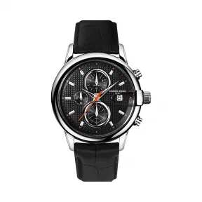 乔治菲登GF1919手表男 进口石英表计时日历防水时尚商务潮流皮带腕表 黑带黑盘GFAC001 的视频