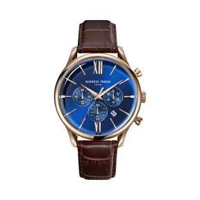乔治菲登GF1919手表男 魔术师系列进口石英表日历计时简约时尚防水皮带腕表 棕色蓝盘GFCB005 的视频
