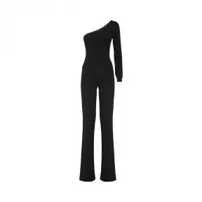 这款针织弹力粘胶连身裤的简洁线条与侧面的开口与六边形徽标的宝石图案形成鲜明对比。一个袖子代表不对称感。宽底。