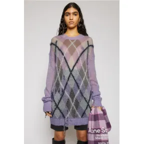 阿克尼/Acne 女士 做旧菱形图案毛衣 丁香紫/多色 A60186-AN0 的视频