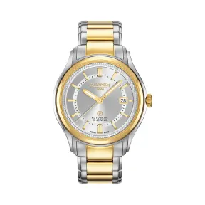瑞士全自动机械机芯;PVD真空离子电镀;全实心不锈钢表壳及表带;耐磨蓝宝石玻璃镜面;透明水晶玻璃底盖;3时位日历窗显示;100米防水功能;瑞士制造;