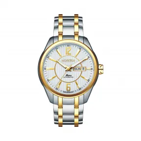 瑞士全自动机械机芯;PVD真空离子电镀;全实心不锈钢表壳及表带;耐磨蓝宝石玻璃镜面;透明水晶玻璃底盖;3时位星期和日历窗显示;100米防水功能;瑞士制造;