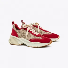 象征幸运的 Y 形许愿骨,嵌入鞋底之中,助力向前奔跑,让好运时刻相伴。一直以来,世界各地象征好运的物件,都对设计师 Tory 深有启发,比如恶魔之眼、敲打木制品,以及她每次和家人旅行都会携带红色缎带的传统。 Good Luck 运动鞋焕新融入标志性 T Monogram 设计,该图案灵感源自传统宾夕法尼亚州荷兰绗缝的经典图案,礼赞品牌标志性双 T Logo。线条流畅的运动鞋,为前行提供舒适支撑:加大的鞋底符合人体工学,具有雕塑感的曲面让步伐富有动感;深度贴合脚踝的后跟设计。创新型结构既为双脚提供有力支撑,也具有一定柔软度。加衬中底嵌入高科技材质制成的许愿骨,进一步提升支撑性能。 编织提花拼绒面革鞋面 网眼内衬 塑模发泡鞋垫 系带设计 EVA鞋底 双 T Logo 背后的故事:创始人 Tory Burch 在推出品牌时,设计了一个几何风格的 Logo。经典的衬线体 T 字以镜面形象点缀于圆形配件之上,灵感取材自摩洛哥建筑师和室内设计师 David Hicks 的几何美学。该设计诠释品牌的标志性元素,并融入夺目图形,引领新旧对话。