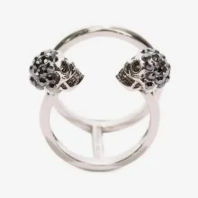 镀银双环戒指,饰有施华洛世奇骷髅细节。