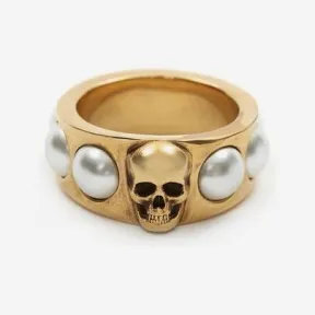 亚历山大麦昆/Alexander McQueen 古金女士珍珠骷髅戒指 734747I170A2375