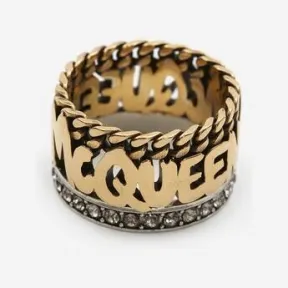 亚历山大麦昆/Alexander McQueen 女士 McQueen 古董金涂鸦戒指 734763J160T7286 的视频
