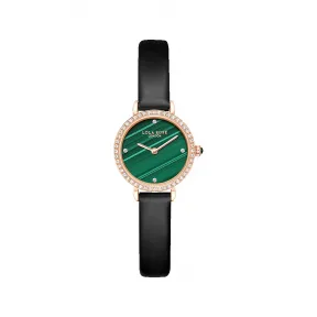 罗拉玫瑰/Lolarose Golden Halo系列镶锆石黑色皮带孔雀石腕表 LR2194 的视频