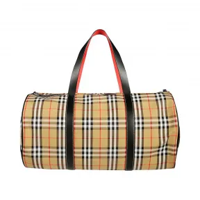 博百利/Burberry 男士 大号 Vintage 格纹拼皮革圆筒旅行袋 (军红色) - 男士 40742791 的视频