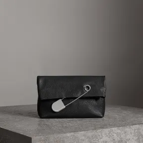 博百利/Burberry 女士 中号别针装饰皮革手拿包 (黑色) 40755511 的视频