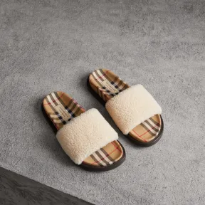 博百利/Burberry 女士 毛羊皮拼 Vintage 格纹拖鞋 (自然色) 40757381 的视频