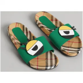 博百利/Burberry 眼睛嵌花 Vintage 格纹拼皮革拖鞋 (亮颜料绿) 40760161 的视频
