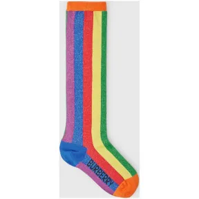 博百利/Burberry 金属感条纹嵌花混纺棉袜 (彩虹色) 40801281 的视频