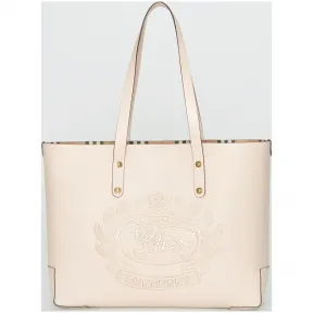 博百利/Burberry 男士 小号压花徽章皮革托特包 (石灰岩色) 40802071 的视频
