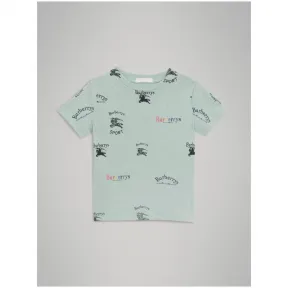 博百利/Burberry 典藏徽标印花平织 T 恤衫 (薄荷色) 80027031 的视频