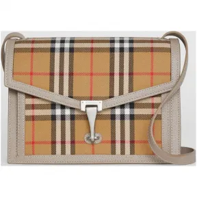 博百利/Burberry 女士 小号 Vintage 格纹拼皮革斜背包 (棕灰色) 80063611 的视频