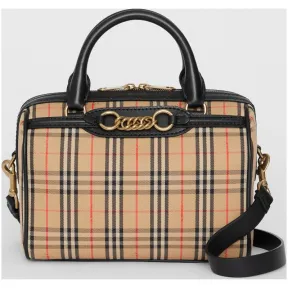 博百利/Burberry 女士 The Link - 小号 1983 格纹链环保龄球包 (黑色) 80064411 的视频