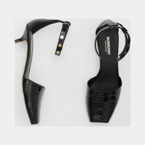 博百利/Burberry 女士 三粒铆钉装饰压花皮革凉鞋 (黑色) 80155221 的视频