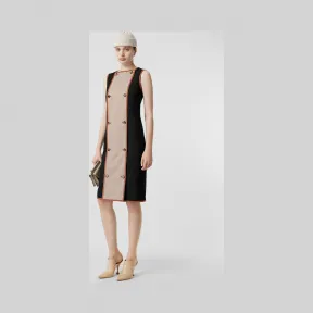 博百利/Burberry 女士 纽扣裁片细节弹力羊毛直筒连衣裙 (黑色) 45625861 的视频
