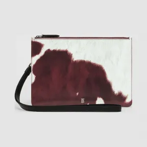 博百利/Burberry 女士 奶牛印花皮革拉链收纳袋 (红褐色) 80169911 的视频