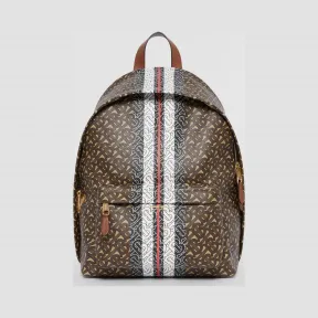 博百利/Burberry 男士 专属标识条纹印花环保帆布双肩包 (马鞍棕) 80186511 的视频