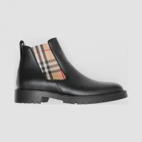 博百利/Burberry Vintage 格纹装饰皮革切尔西靴 (黑色) - 男士 80256941 的视频