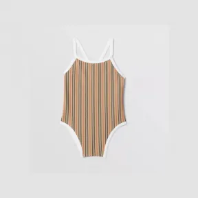 博百利/Burberry 标志性条纹装饰尼龙泳衣 (典藏米色) - 儿童 80478291 的视频