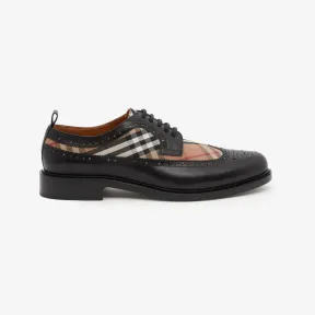 博百利/Burberry Vintage 格纹裁片皮革德比鞋 (黑色 / 桦木棕色) 80527591 的视频