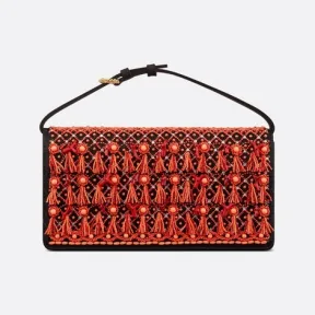 迪奥/Dior 晚装包 黑色缎面珊瑚红色珠饰刺绣 M3661URZC_M911_TU 的视频