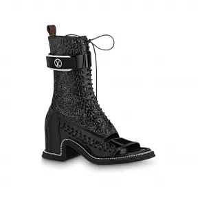 本款 Moonlight 半筒靴瞩目亮相路易威登 2022 春夏秀场,为粒面山羊皮革点缀漆面牛皮革细节。鞋带源自 19 世纪紧身胸衣设计,露趾构型和耐磨方跟在延伸线条的同时确保舒适穿着,侧面拉链方便穿脱。