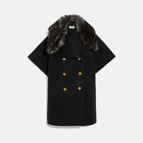 蔻驰/Coach 皮毛一体领奢华羊毛披风 78929_BLK 的视频