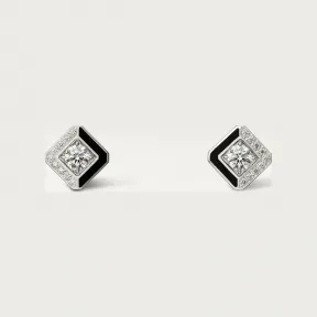 卡地亚/Cartier N8515157 - Galanterie de Cartier耳钉 镶嵌2颗圆形明亮式切割钻石 半铺镶钻石 18K白金 - 白金 黑漆 钻石 的视频