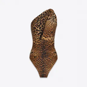伊夫圣罗兰/Yves Saint laurent 垂褶肩豹纹印花连体泳衣 574294Y689U9665