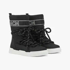 As part of the Après Ski capsule, these winter boots exemplify a sporty approach to the colder months. The upper of the pair consists of Italian Cubic monogram embossed leather and soft padded nylon. Water-repellent warmth is achieved through a specially-developed, brushed lining. A logo-woven webbing strip and MCM logo plate showcase heritage codes in a classic fashion. Oversized laces with a reflective quality serve as a brilliant finishing touch. As part of the Après Ski capsule, these winter boots exemplify a sporty approach to the colder months. The upper of the pair consists of Italian Cubic monogram embossed leather and soft padded nylon. Water-repellent warmth is achieved through a specially-developed, brushed lining. A logo-woven webbing strip and MCM logo plate showcase heritage codes in a classic fashion. Oversized laces with a reflective quality serve as a brilliant finishing touch. Oversized, reflective shoelaces | MCM logo webbing detail on collar | Cubic logo embossed calf leather trim | Padded nylon upper | Rubber outsole with MCM logo motif | Brushed water-repellent lining | 意大利 制造 |