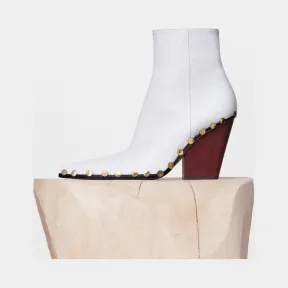 思琳/Celine Rodeo荧光白小羊皮饰钉高跟及踝靴 318533HRNC.01OP
