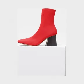 Soft Ballerina明亮红针织袜及踝靴;圆形鞋头及踝靴;短袜风格短靴;小山羊皮内里结构,令双