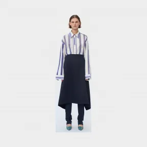 标准衬衫领;纽扣门襟饰可拆卸装饰性长方形袢带;镌刻Céline珍珠母贝纽扣;饰以刻意保留的压褶;宽松