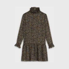 思琳/Celine 女士 花卉印花真丝卢勒克斯织物条纹褶边领短款连衣裙 2R411850E.38NY