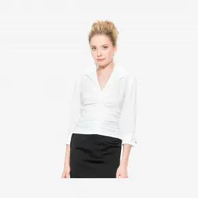 塔夫前中抽褶设计7分袖衬衫式上衣 CY9015WH-WHITE 的视频