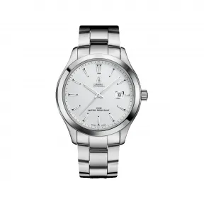 瑞士制造石英机芯。3H位日历显示。316L精钢表壳和表带。蓝宝石水晶玻璃表镜。螺纹表冠。100米防水功能。