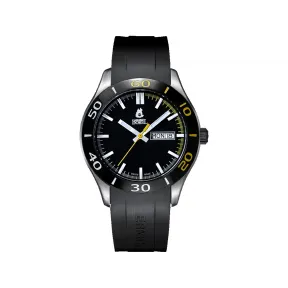 瑞士制造石英机芯。日历显示。周历显示。316L精钢表壳和表带或TPU表带。蓝宝石水晶玻璃表镜。螺纹表冠。100米防水功能。