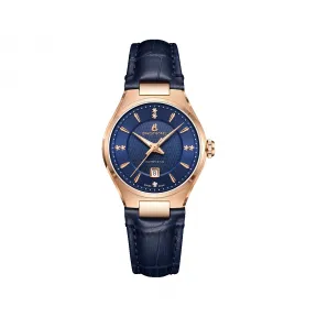 165周年纪念版情侣对表。瑞士制造自动机芯 ETA2671。6H位日历显示。表面镶嵌7粒天然钻石。316L精钢表壳。IP电镀玫瑰金。蓝宝石水晶玻璃表镜。真皮表带。30米防水功能。表壳尺寸:直径?29.50毫米,厚度10.25毫米。独立编码。