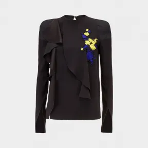 范思哲/Versace Florage 荷叶边刺绣上衣 - 黑色 衬衫&上衣 A78062-A216617_A1008 的视频