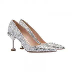 缪缪/Miu Miu 仿水晶装饰闪粉织物高跟鞋 5I991B_ME6_F0118 的视频