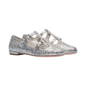 缪缪/Miu Miu 闪粉织物芭蕾平底鞋 5F863C_3KBW_F0118 的视频