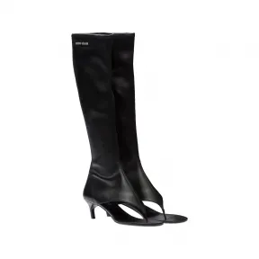 缪缪/Miu Miu 黑色 弹力软羊革人字拖式长筒靴 5WK009-L68-F0002 的视频