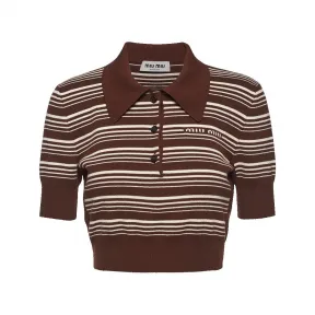 缪缪/Miu Miu 烟草色 棉质针织polo衫 MML797-1VIN-F0005