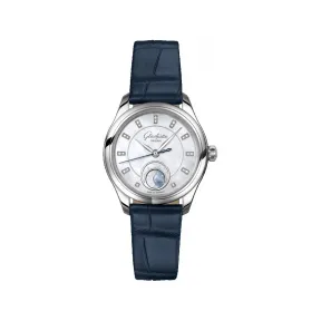 精钢雅韵: 美轮美奂 全新Serenade Luna小夜曲月相腕表精钢表款将纤巧精致的视觉设计与优雅考究的气质巧妙糅合。本款专为现代女性打造的32.5MM机械腕表搭载手工精制珍珠母贝表盘和创新月相显示。深蓝色路易斯安那鳄鱼皮表带或休闲灵动的金属链带令本款女士腕表风情无限,魅力难拒。 珍珠母贝:光泽熠熠 品牌自制白色珍珠母贝表盘闪烁细腻微光,时标镶嵌钻石,璀璨夺目。精致蓝钢秒针引人注目,以曲线玲珑的无限符号形式呈现,沿袭其姐妹表款——Lady Serenade小夜曲腕表的经典特征。 创新月相:精美绝伦 多年来,格拉苏蒂原创孜孜不辍,不断推陈出新,追求月相显示的精益求精。如今,这一传统功能在 Serenade Luna 小夜曲月相腕表中焕发新生:在设于6点钟位置的圆形窗口中,一轮光芒四射的珍珠母贝明月冉冉升起,璀璨夺目。在新款腕表中,月相显示以群星闪耀的夜空为框,饰以纤巧明亮的圆环,与表盘融为一体,美不胜收。 原创机芯:臻于至善 本款女士腕表的背面巧妙诠释了其内外兼美的本质,品牌自制机芯Calibre 35-14的内在风光一览无余。透过蓝宝石水晶玻璃表底盖,格拉苏蒂制表艺术的经典特征和传统装饰映入眼帘,魅力尽释。全新设计的自动摆陀配重同样一目了然:完全采用红色18K金制成,表面饰有精美的玑镂饰纹,开格拉苏蒂原创之先河,匠心别具。 技术细节 功能 | | 功能| 时针和分针 秒针 月相显示 | | | | || 表壳形状 | | 精钢| :表壳材质 | 3 巴| :防水性能 | 32.50 MM| :表壳直径 | 8.90 MM| :表壳厚度 | | | || 表盘 | | | | | | | || 机芯命名 35-14 | | 自动上链机芯| :机芯类型 | 60 h| :动力储存 | 28.800 每小时摆动次数, 相当于 4 Hz 赫兹| :振频 | | | || 表带 | | 路易斯安那鳄鱼皮带| :材质 | 16 MM| :表耳宽度 | 67 x 100 MM| :尺寸 | | | || | |